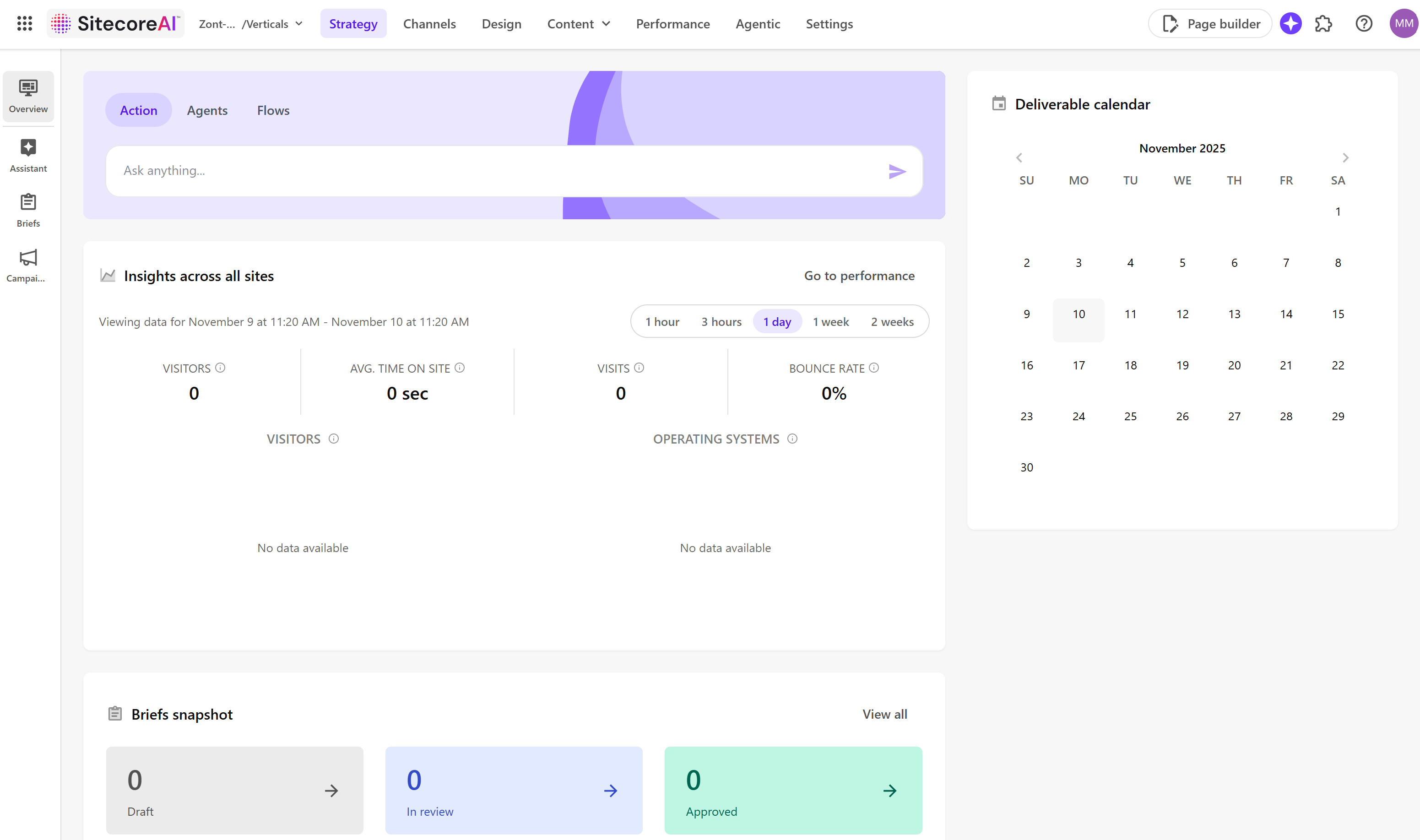 Strategy in SitecoreAI unifies planning, collaboration, and delivery in a single workspace. Marketers can move from brief to campaign to deliverables and tasks without switching tools, with AI enhancing every step. Strategy acts as the planning front door to Sitecore’s marketing cloud, linking creative and operational workflows across teams.
