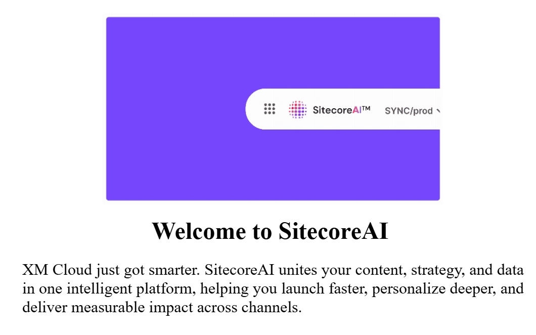 First things first, SitecoreAI is not just a new set of features; it’s the new name and foundation for Sitecore’s entire composable DXP. It represents the formal unification of XM Cloud, Content Hub DAM, CDP & Personalize, as well as Search, into a single, AI-enabled SaaS platform. For existing XM Cloud customers, the best part is that this transition is automatic, with no migration or new contract required.