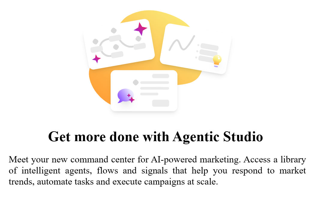 | Agentic Studio | A no-code workspace to design, govern, and orchestrate AI agents that automate marketing workflows from planning to optimization. | Marketers |