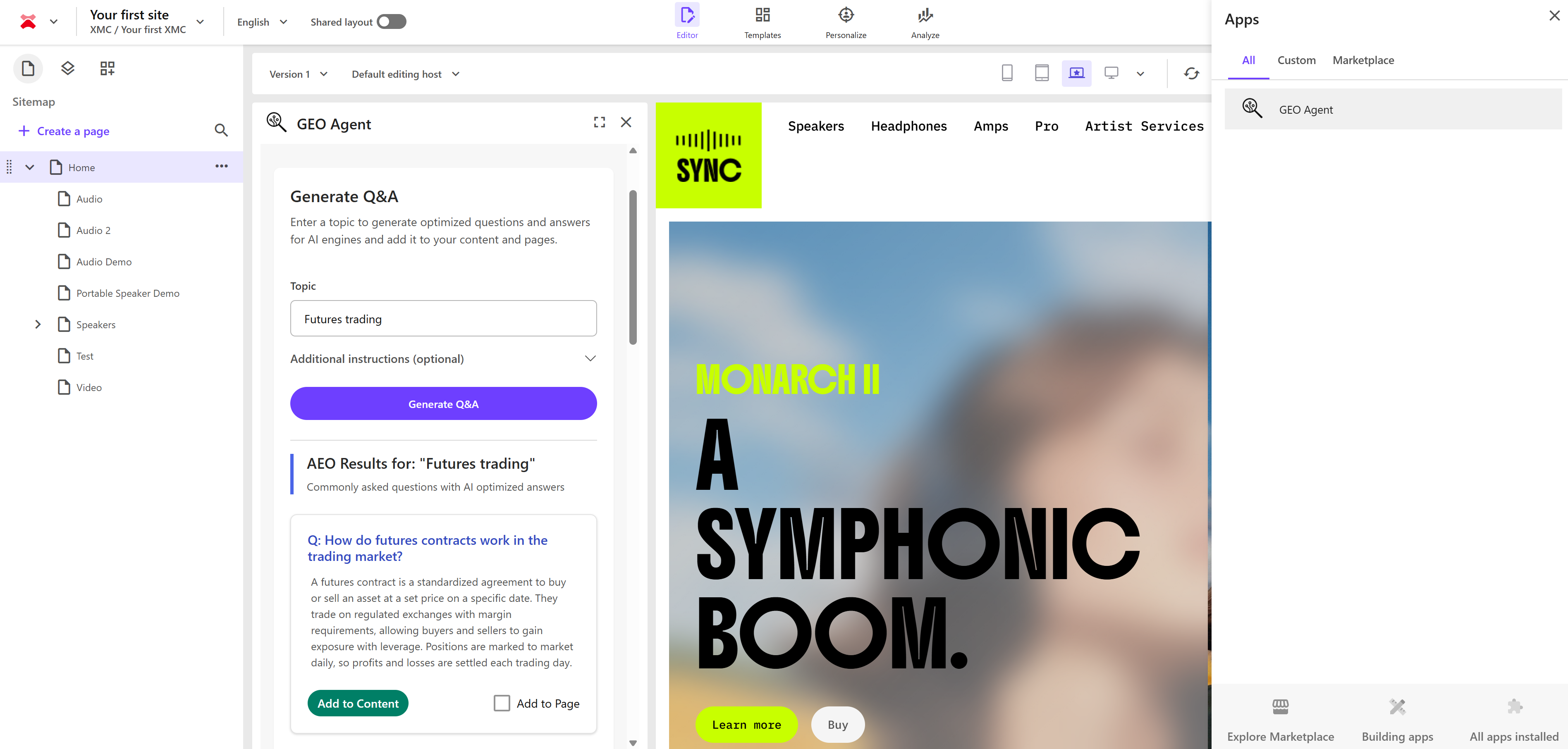 My team and I ended up creting an AI marketplace extension that optimizes any of your page-under-edit for the agentic engines, by creating brand-aware content that will be consumed by agents parsing the site and therefore - affecting its LLM's output. IT also suggests how this page could get optimized according to schema.org markup for the better LLM parsers consumption: